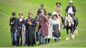 Wir danken dem sh:z/Flensburger Tageblatt für die Zurverfügungstellung dieses Berichtes. Flensburger Tageblatt, Erscheinungstag 11.06.2016. Text und Bild Sebastian Goerke. Zum Bild: Die Theatergruppe übt in freier Natur, im Pastorenkostüm Regisseur Folke Witten-Nierade
