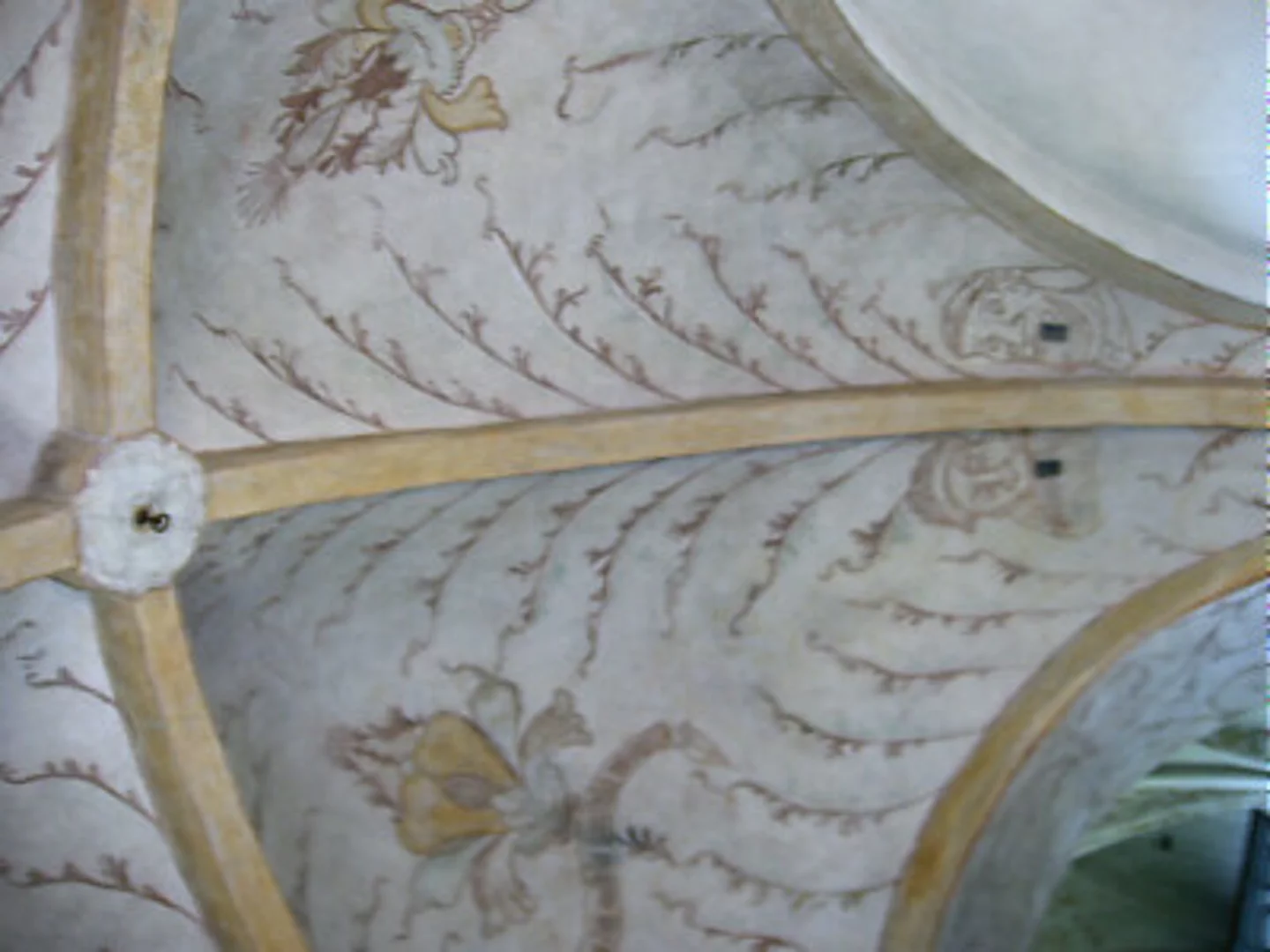 - Die Brüstung der Empore (bis 1965 auch über der Nordseite des Kirchenschiffs),